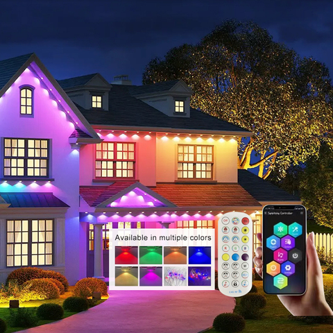 크리스마스 장식 야외 조명 화이트 트랙 RGB Led 응용 프로그램 및 원격 제어와 지붕 및 처마를위한 외부 홈 조명